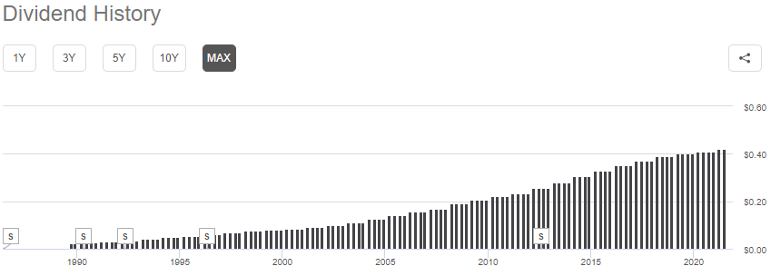 2. 배당정보를 얻기 좋고, 특히 과거 배당이력 확인하는데 편리함