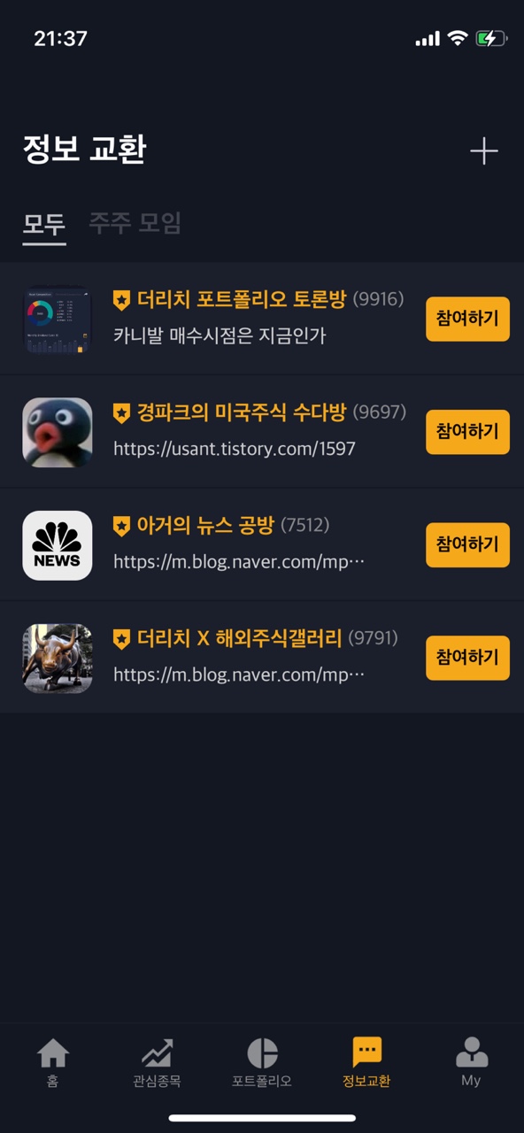 정보교환 탭을 클릭하면 각종 주주들과 의견을 나눌 수 도 있습니다.