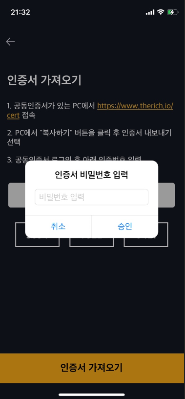 더 리치 어플 증권사 연동하기 - 공동인증서 가져오기