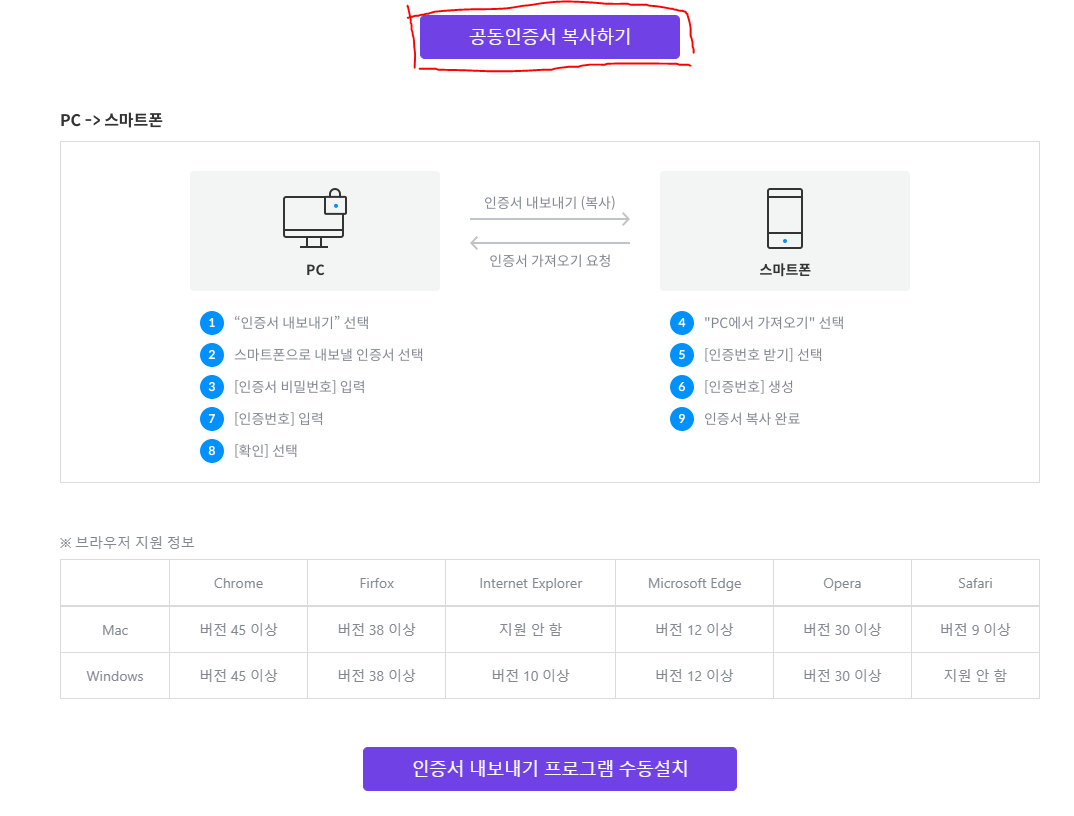 위의 링크를 타고 들어가면 PC에서 공동인증서 가져오기를 하실 수 있습니다.